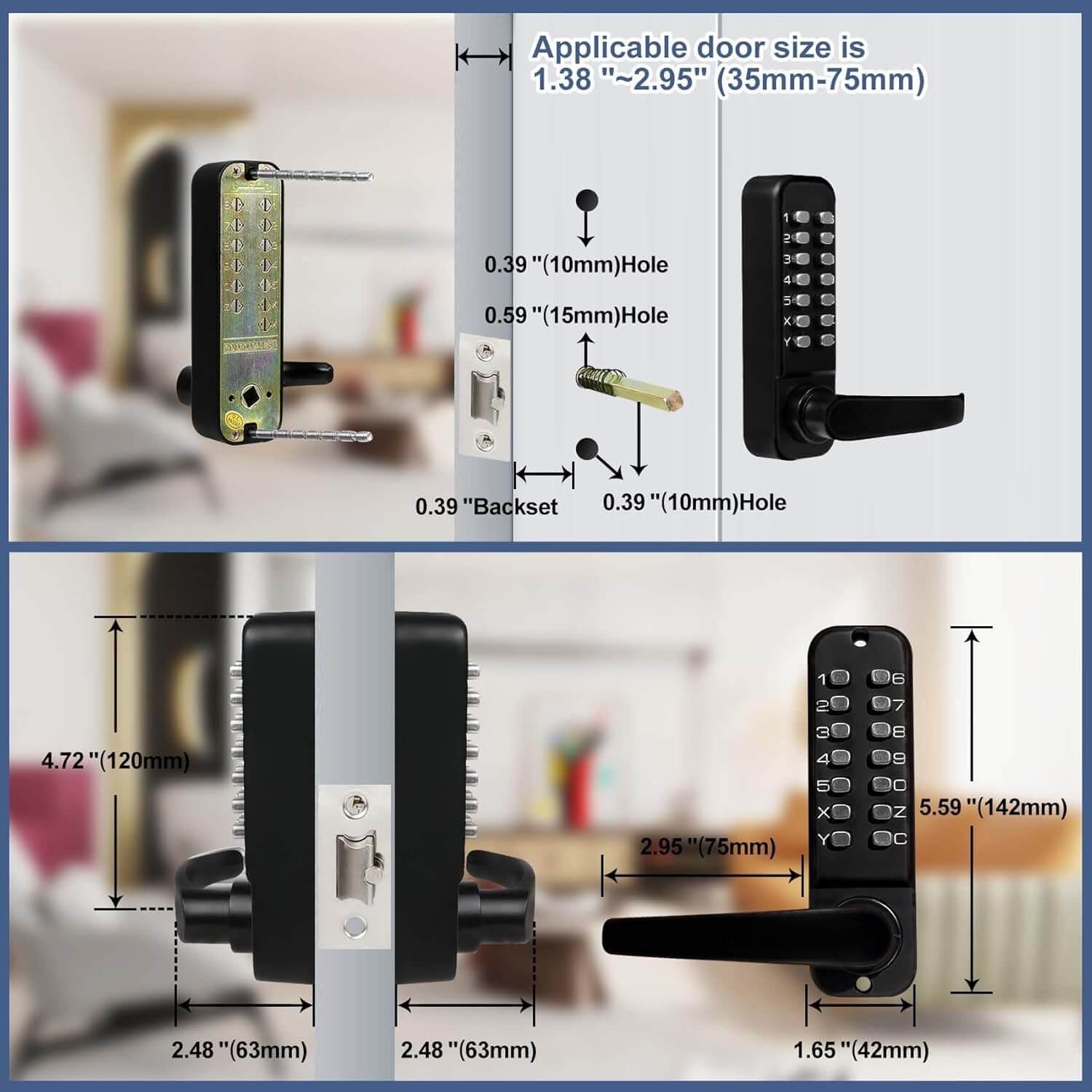 IU-30 Code Door Lock | Keypad + Key | 1⅜”–2¼” | 4 AA (12 mo) | None | $47–$59 | ★ 4.2 (1,143) |